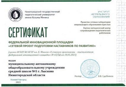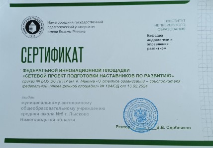 Статус ФИП выводит школу на новый уровень системообразующей образовательной организации, а наработки, достигнутые в ходе функционирования инновационной площадки, будут применяться в практике образовательных учреждений.